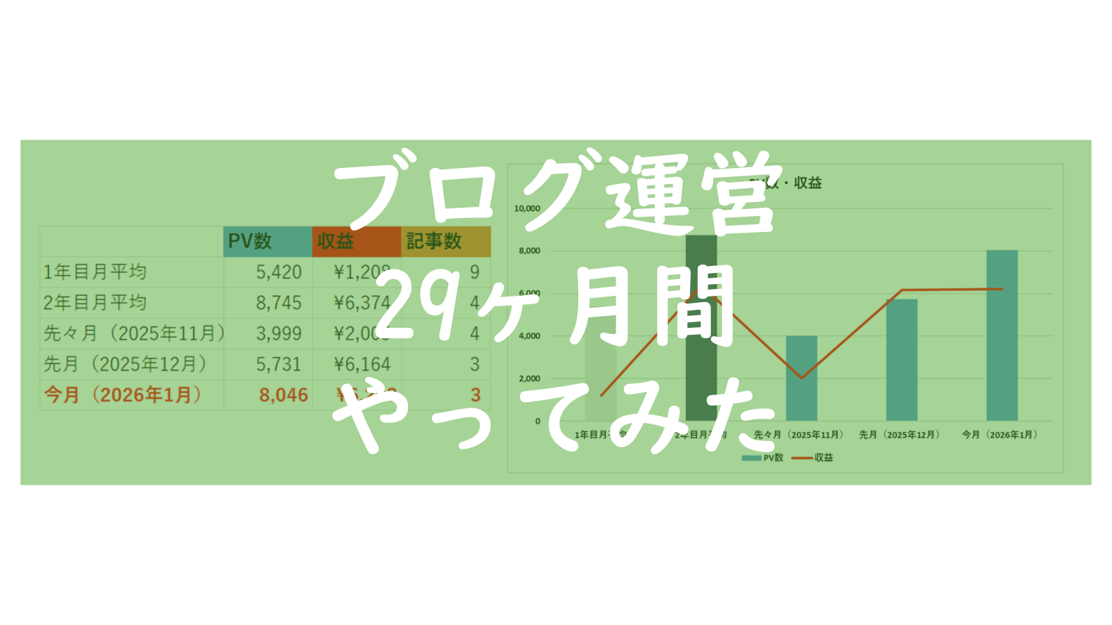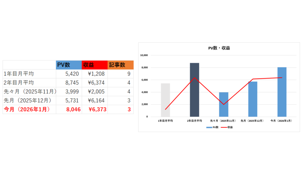 月間8,046PV・収益¥6,373・3記事